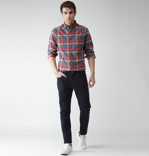 Men Red & Blue Checked Casual Shirt