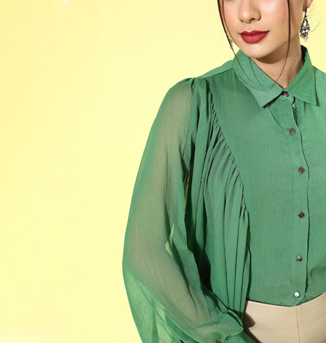 Women Gorgeous Green Solid Batwing Sleeves Shirt Top
