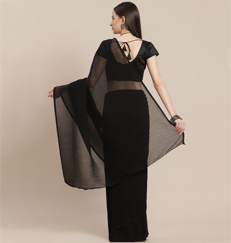 Black Solid Accordion Pleated Saree