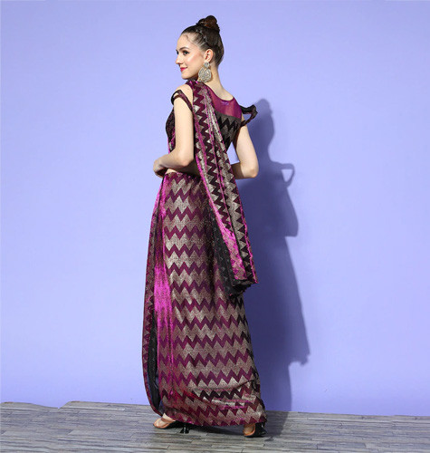 Purple & Burgundy Embellished Ready to Wear Saree