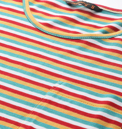Women Multicoloured Striped Round Neck Pure Cotton T-shirt