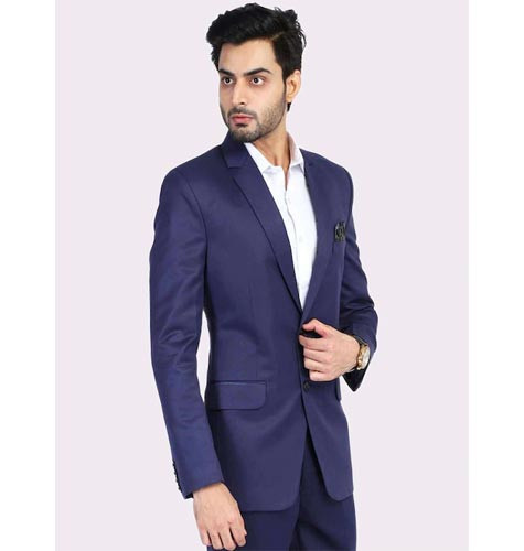Men Blue Solid Single-Breasted Two-Piece Formal Suit