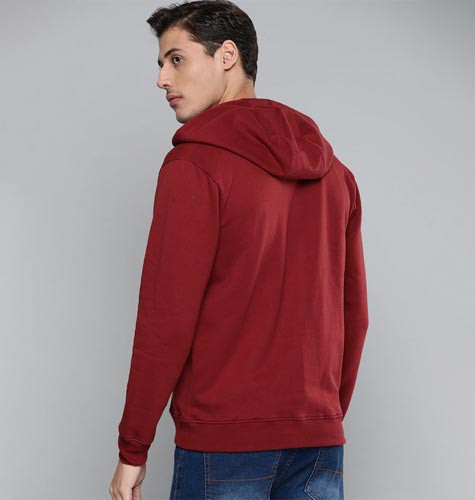Men Maroon Solid Hooded Sweatshirt