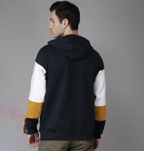 Men Navy Blue & White Colourblocked Hooded Sweatshirt