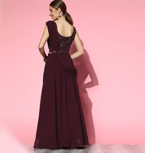 Classic Burgundy Shade Gorgeous Embroidered Lehenga with Solid Choli