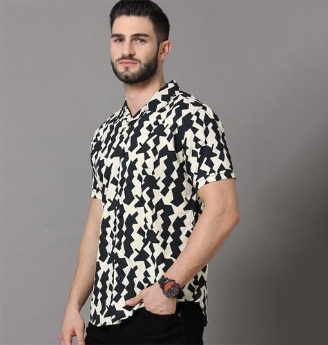 Men Black Slim Fit Printed Casual Shirt