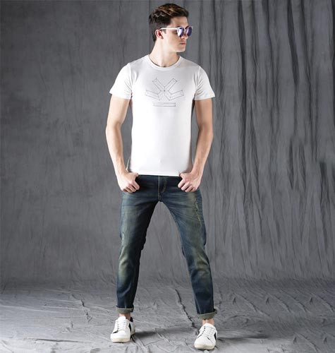 Specification : Distress : Mildly Distressed Waist Rise : Mid-Rise Fade : Light Fade Shade : Medium Fit : Slim Fit Length : Regular Waistband : With belt loops Stretch : Stretchable Closure : Button and Zip Reversible : No Effects : Whiskers and Chevrons Number of Pockets : 5 Occasion : Casual