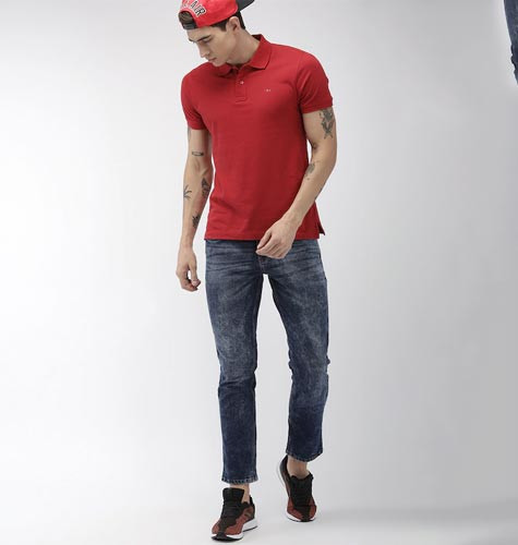 Specification : Distress : Clean Look Waist Rise : Mid-Rise Fade : Light Fade Shade : Dark Fit : Slim Fit Length : Regular Waistband : With belt loops Stretch : Stretchable Closure : Button and Zip Features : Acid Wash Reversible : No Effects : Whiskers and Chevrons Number of Pockets : 5 Occasion : Casual