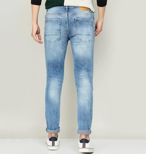 Men Blue Skinny Fit Low Distress Heavy Fade Cotton Jeans