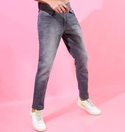 Men Grey Tapered Fit Mid-Rise Clean Look Stretchable Jeans