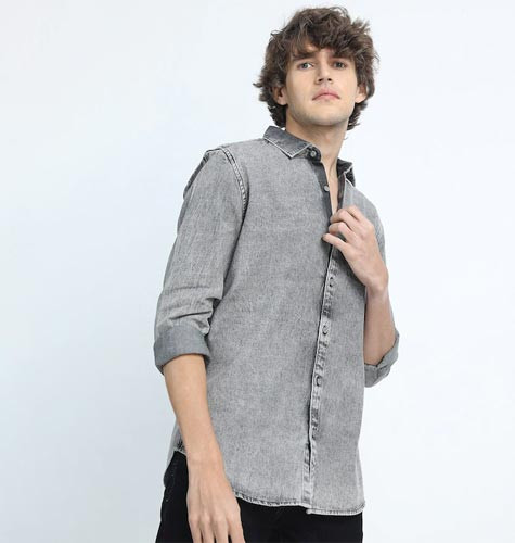 Men Grey Slim Fit Faded Cotton Casual Shirt