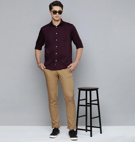 Men Khaki Solid Brooklyn Slim Fit Trousers