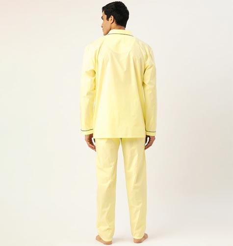 Men Yellow Pure Cotton Solid Pyjamas Set