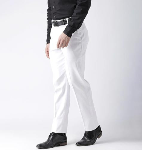 Men White Regular Fit Solid Linen Formal Trousers
