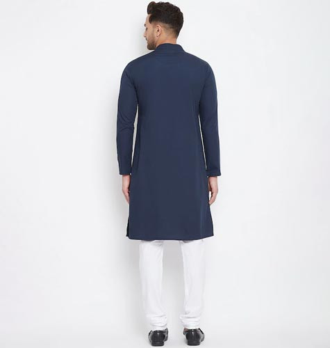 Men Navy Blue Lucknowi Kurta