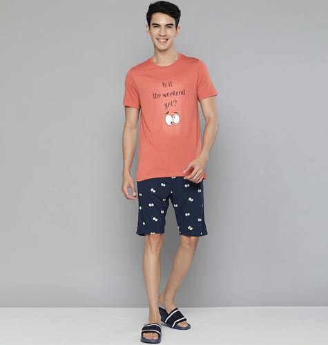Men Faded Rose Red & Black Night suit