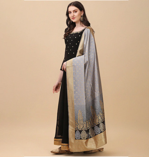 Black Floral Georgette Ethnic Maxi Dress