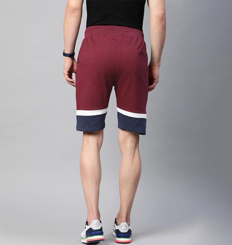 Men Burgundy & Navy Blue Striped Mid-Rise Pure Cotton Regular Shorts
