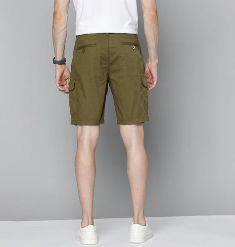 Men Olive Green Pure Cotton Solid Cargo Shorts