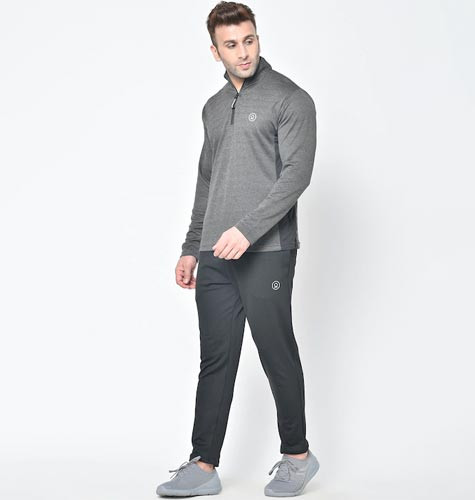 Chkokko Men Grey & Black Solid Full Sleeve Zipper Sports Gym Track suit