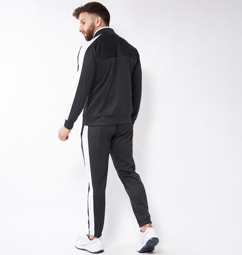 Men Black Solid Mock Collar Track Suit