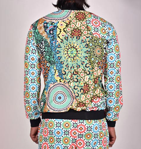 Men Floral Digital Printed Henley Neck Lycra Tracksuit
