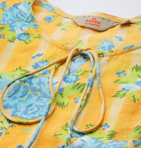 Women Yellow & Blue Floral Printed Panelled Pure Cotton Kurta with Salwar