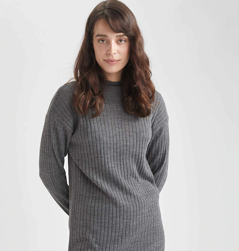 Grey Self Designed Round Neck Long Sleeved Tunic