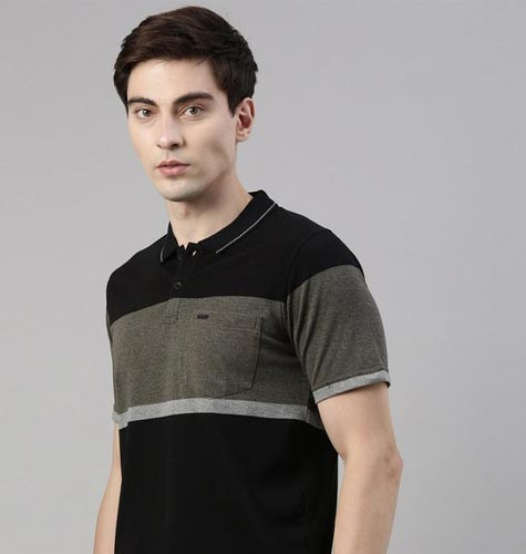 Men Colourblocked Polo Collar Organic Cotton Antimicrobial T-shirt