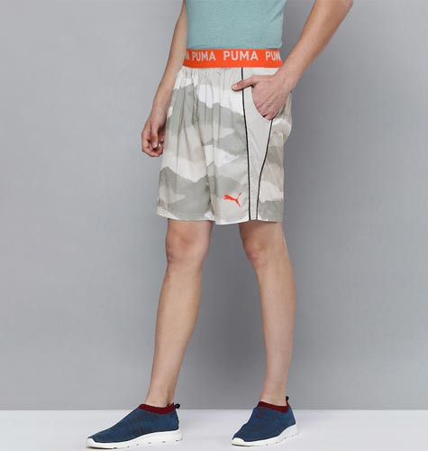 Men Grey & White Camouflage Printed AOP Sports Sustainable Shorts