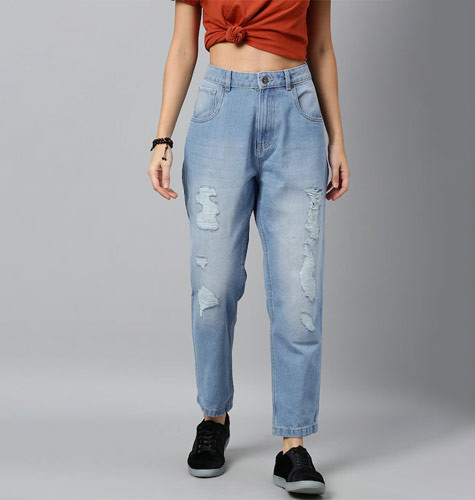 Women Blue Boyfriend Fit Mid-Rise Mildly Distressed Stretchable Jeans