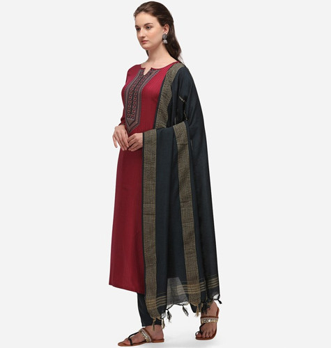 Women Maroon & Navy Blue Yoke Design Kurta with Salwar & Dupatta