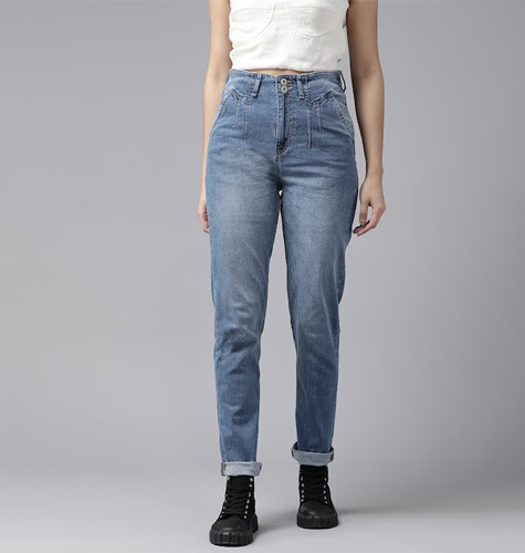 The Lifestyle Co. Women Boyfriend Fit High Rise Light Fade Stretchable Jeans