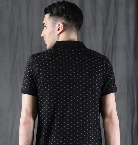 Men Black Printed Polo Collar T-shirt