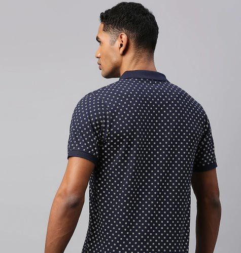 Men Navy Blue Printed Polo Collar Cotton T-shirt
