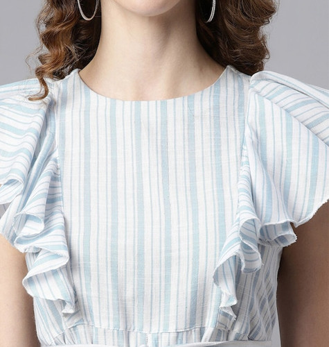 White & Blue Striped Basic Jumpsuit with Ruffles