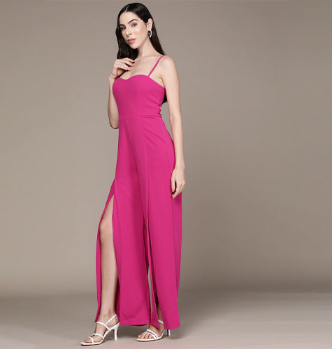 Women Fuchsia Solid Future Glam High Slit Basic Jumpsuit