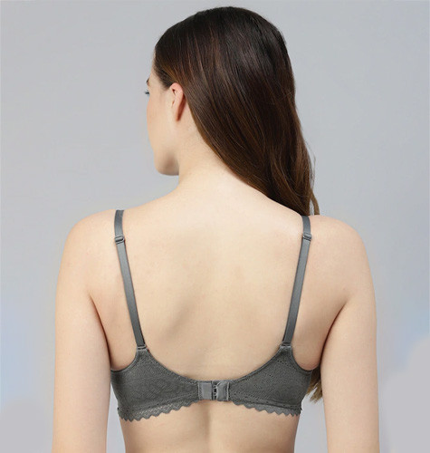 Charcoal Grey Abstract Bra-Lightly Padded Non-Wired