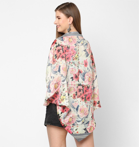 Women White & Pink Printed Shrug