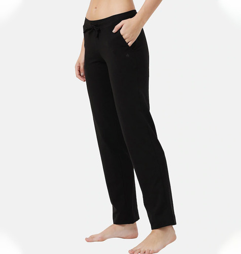 Women Black Solid Cotton Relaxed Fit Track Pants