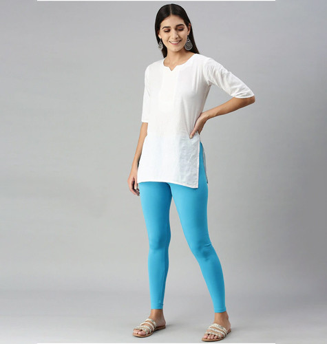 Women Light Blue Solid Ankle-Length Leggings