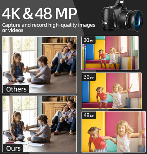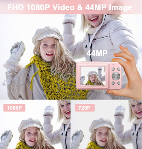 🎁【Meaningful Gift】This digital camera for kids is equipped with a high-level CMOS Sensor and anti-shake function, which helps to capture vivid clear 44MP Images and record stable smooth FHD 1080P resolution videos. It's a meaningful gift for kids to cultivate their interest in photography, experience the lovely life, and leave funny memorable moments with family or friends.📷【Mini-Size & Easy to Use】Special mini-size design for kids to easily handheld, this point-and-shoot camera is small and lightweight, fits in kids' hands perfectly. Comes with a lanyard hang, portable for them to carry and move. And the clear simple settings and features of the camera make it easy for them to figure out and use themself.❤【Safe Materials & Creative Filters】Made of high-grade and eco-friendly reliable materials, the kid camera is safe and non-toxic, durable and withstands drops. This camera also supports six cute filter effects to choose from, kids could create more adorable colorful pictures.