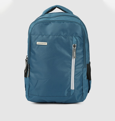 Blue solid backpackPadded shoulder straps, has padded and non-padded haul loop3 main compartment with zip closure, has padded laptop compartment,1 zip pocket, 2 stash pocketsPadded mesh backWater Resistance: noWarranty: 1 yearWarranty provided by brand owner/manufacturerSize & FitHeight: 48 cmWidth: 34 cmDepth: 20 cmVolume: 28 LitresLaptop compartment can hold Up to 18 inch laptopMaterial & CareNylonWipe with a clean and dry cloth