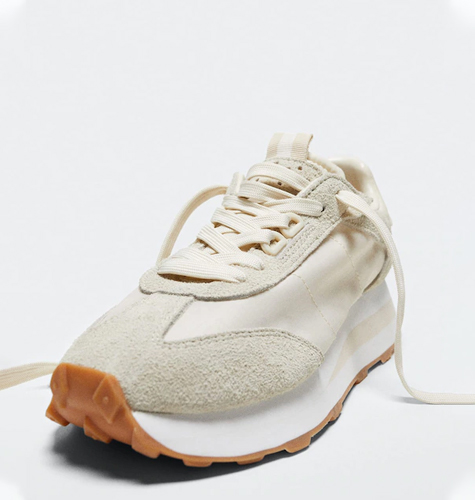 A pair of round toe beige sneakers, has regular stylingLace-ups detailLeather upperCushioned footbedTextured and patterned outsoleThis comes from Mango's committed collectionMaterial & Care50% Leather, 45% Polyamide, 5% PUUse a branded leather conditioner to clean the productAvoid washing