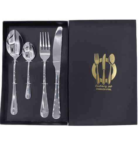 Tableware set: Stainless Steel Tableware set including 1 dinner knife + 1 Dinner spoon + 1 fork + 1 tea spoon High-Quality: 410 stainless steel. Sturdy structure and no worry about bending, rust-proof and durable for long time use. Suitable: This stainless steel tableware sets suitable for everyday home use, hotel, restaurant, entertaining, party, buffet, Bistro, camping, picnic, etc. Smooth: Smooth surface makes these tableware sets always keep shining,simple classic modern design would match well with your existing cutlery and elevate everyday meals into a fine dining experience. Dishwasher Safe:This tableware is dishwasher safe,also easy to hand wash,your proper care can make the utensil sets always looks as good as new, and enable it to last for many years.